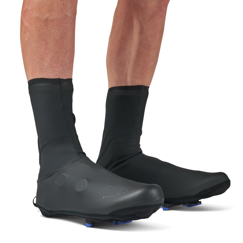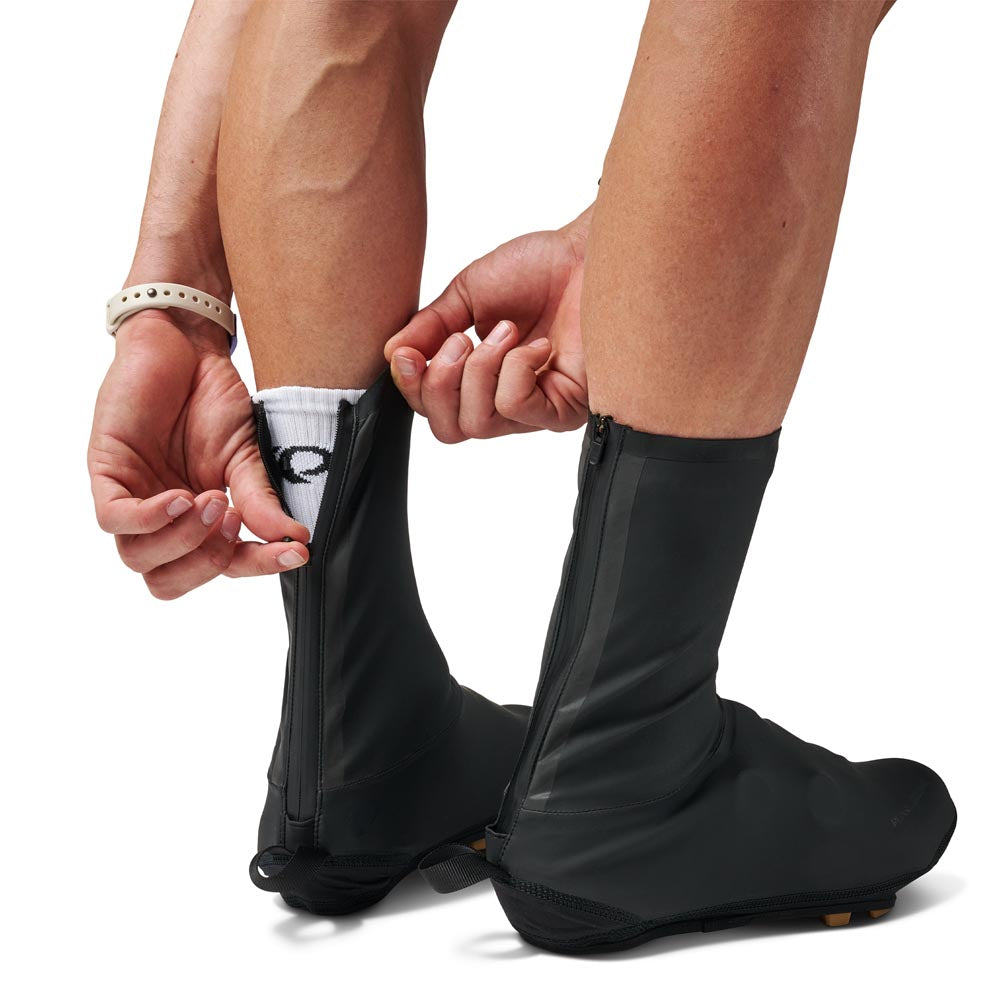 The Pro Rain Shoe Cover is designed for cyclists who brave the wettest and windiest conditions. Engineered with a high-stretch, 2-layer waterproof membrane and fully taped seams, it offers complete wind and rain protection while maintaining a sleek and aerodynamic fit. A durable CORDURA®-reinforced bottom panel resists abrasion, and the YKK® AquaGuard® zipper ensures a watertight seal. Minimal bonded edges provide a snug fit, and BioViz® reflective elements enhance visibility in low-light conditions. Perfect for maintaining performance in rain-soaked rides.