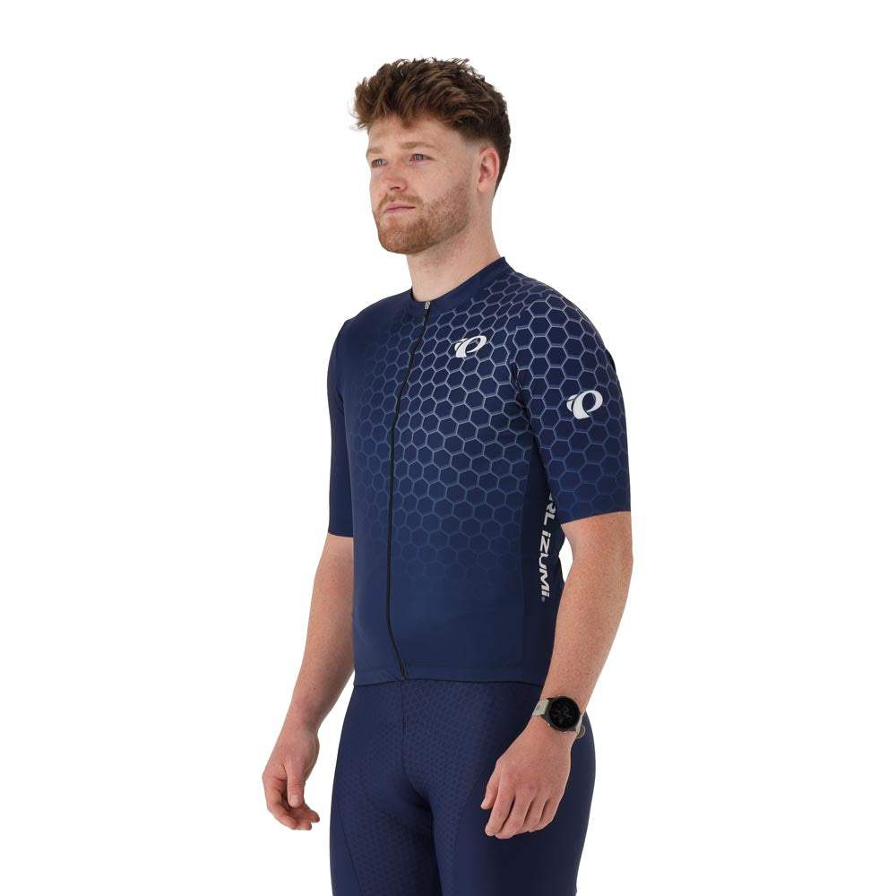Premium men's performance jersey for road cycling, designed for comfort and optimal fit.